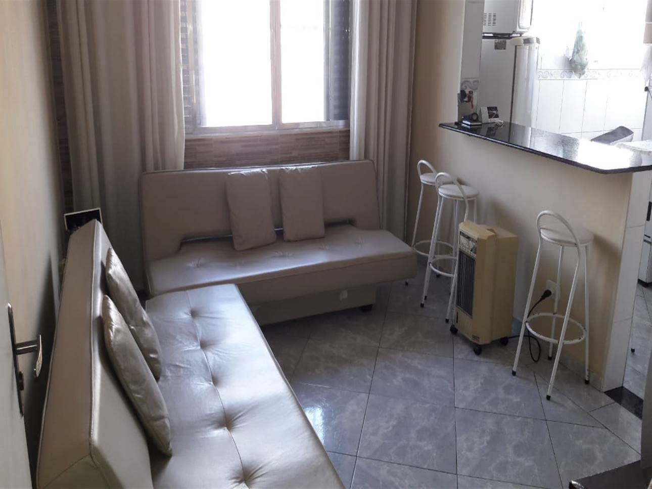 lindo apartamento mobiliado, todo reformado com vista para o mar com 1 dormitorio, sala, cozinha americana, banheiro social, area de servico, 1 vaga de garagem coletiva, em predio com excelente localizacao frente ao mar.